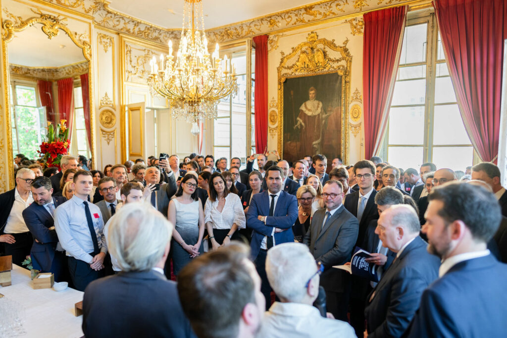 Près de la moitié des 100 édiles sélectionnés par le Cercle des Élus Locaux et l’Institut Quorum avait fait le déplacement au Palais du Luxembourg. Accueillis joyeusement par Françoise Gatel, Ministre déléguée chargée de la Ruralité et Hervé Marseille, vice-président du Sénat, les impétrants avaient hâte de découvrir la sélection et de partager ce temps informel et amical d’échanges et de rencontres.